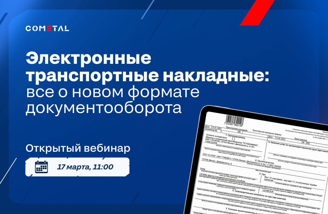 17 марта в 11:00 (МСК) состоится открытый вебинар, посвящённый внедрению электронных транспортных накладных (ЭТрН). Мероприятие проведут специалисты компании Severstal, которые расскажут о практических аспектах перехода на цифровые документы и опыте внедрения системы.