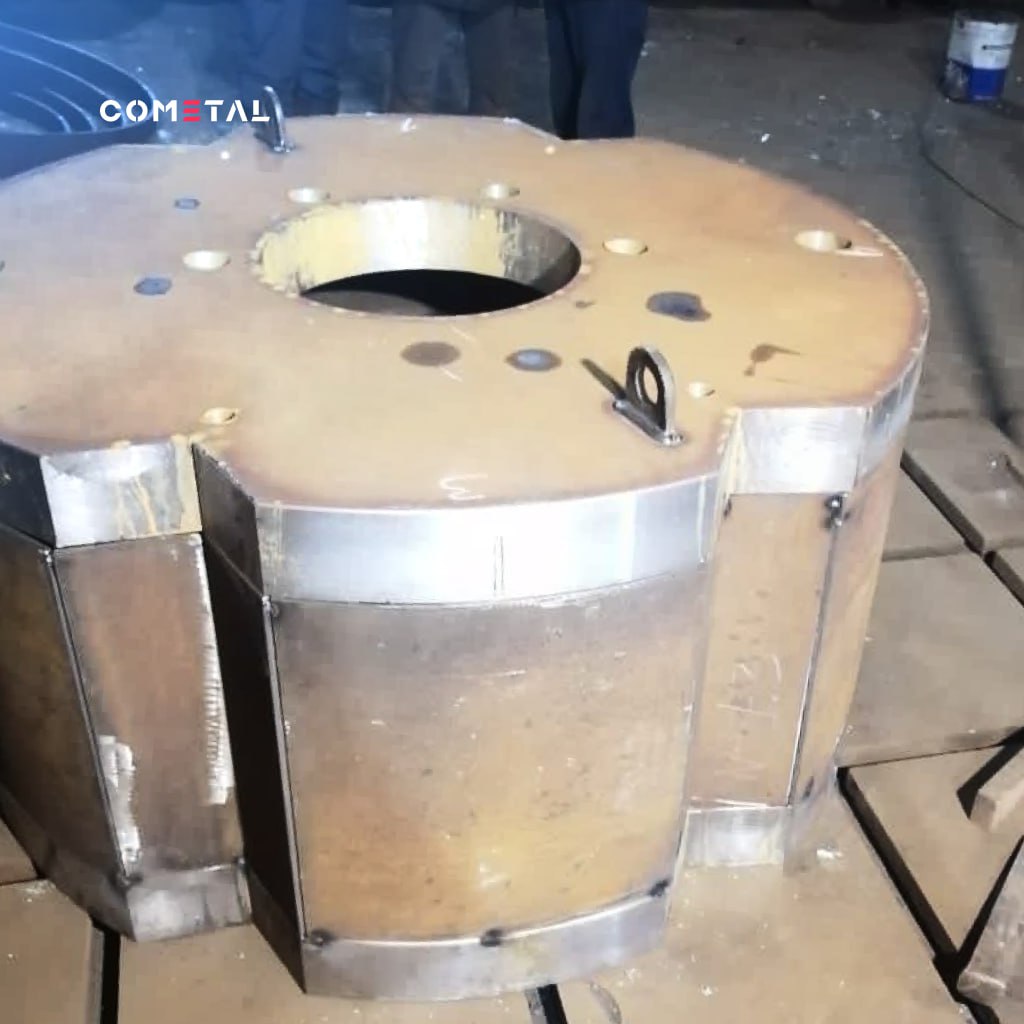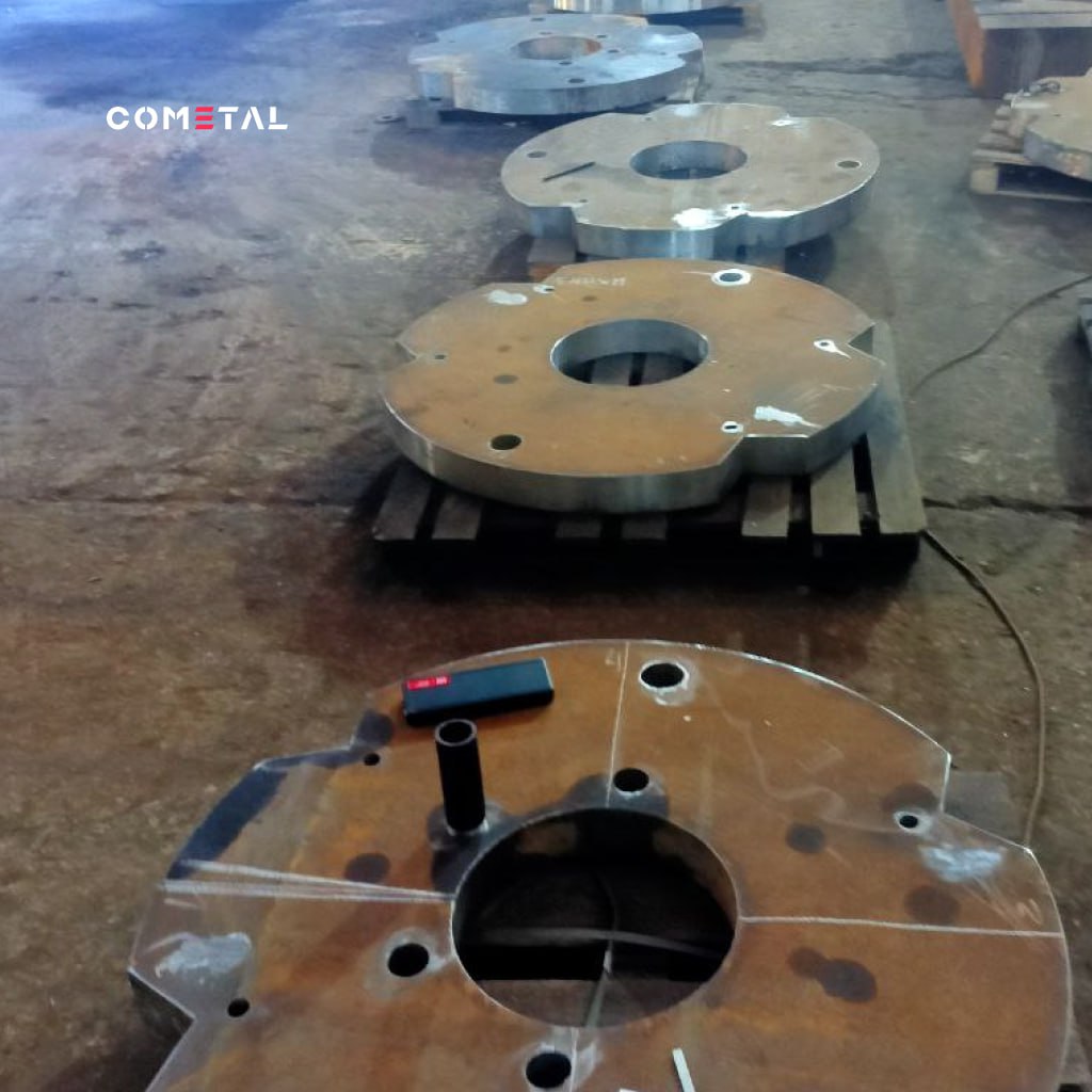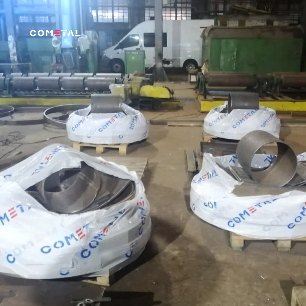 COMETAL выполнил полный цикл работ — от разработки конструкторской документации до отгрузки готовых изделий. Производство включало плазменную резку листов толщиной до 100 мм, зачистку, фрезеровку опорных листов, сверление отверстий под трубы, шланги и шпильки, вальцовку кожуха и обечаек. Для проверки точности выполнена контрольная сборка, после которой проведена приёмка и устранение выявленных незначительных дефектов.
