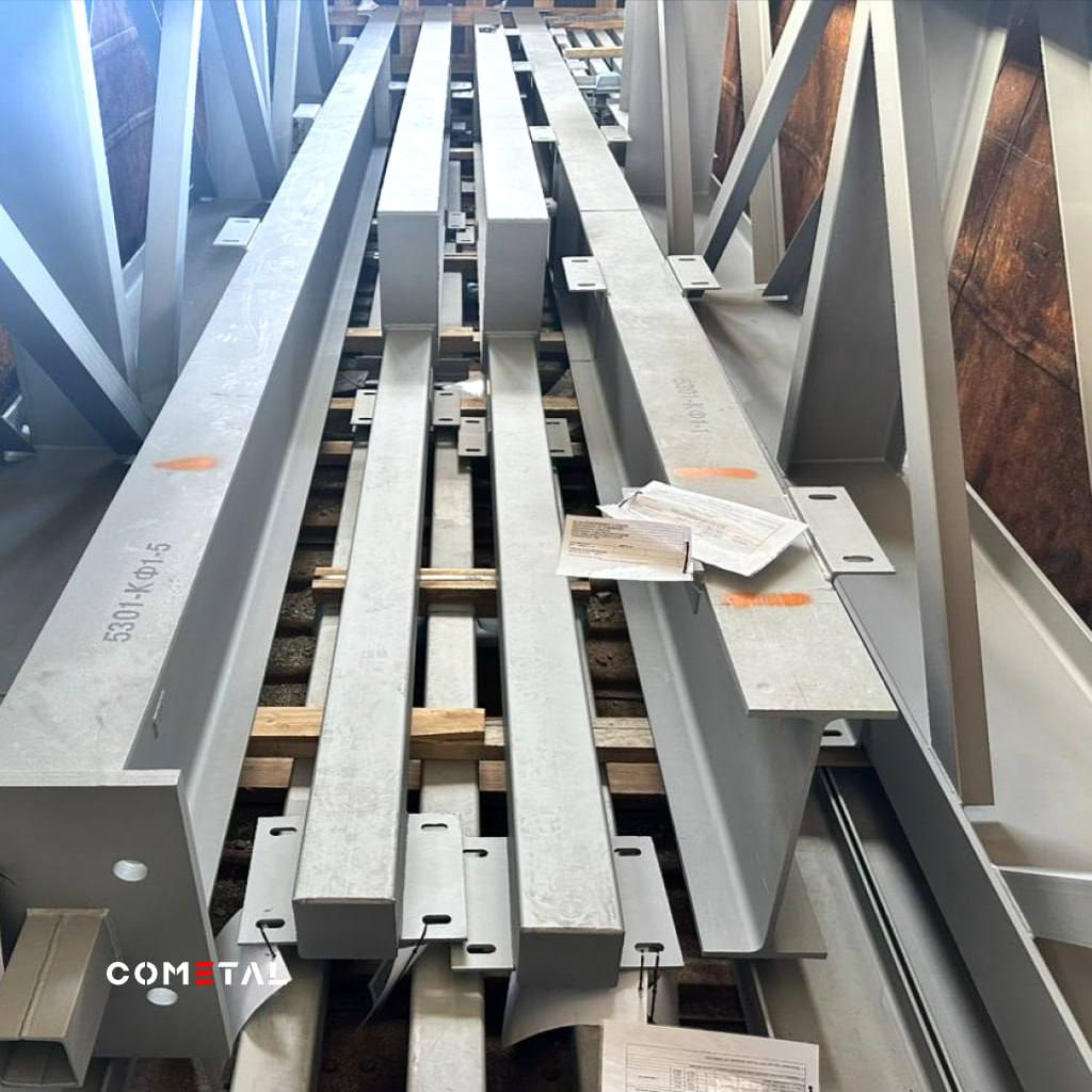 Производственные мощности COMETAL позволяют работать с крупными партиями изделий и организовывать поставки любого масштаба. На этот раз объём проекта превысил возможности автотранспорта — поэтому металлоконструкции были отправлены заказчику железнодорожным составом.