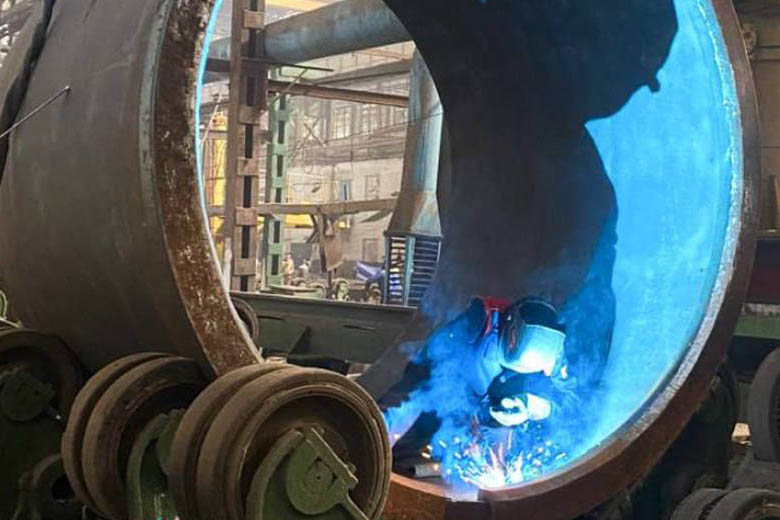После сварки изделие проходит отжиг — термическую обработку, снимающую внутренние напряжения. Добойник диаметром 2520 мм, длиной 8600 мм и массой 24 тонны отжигается целиком, обеспечивая надежность и долговечность конструкции.