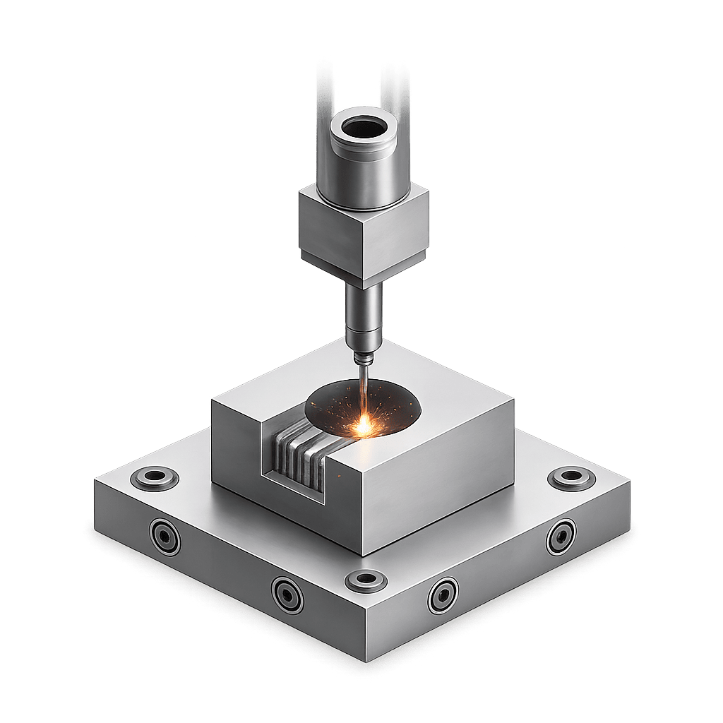 Электроэрозионное сверление подходит, когда нужны отверстия малого диаметра или в материале застрял сломанный метчик. Это уместная альтернатива в случаях, когда традиционные методы обработки неэффективны или невозможны.