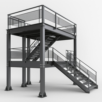 | Маршевые | Производственные цеха, склады, ТЦ, технические этажи | Стальной каркас, ступени, рифленый лист, решетчатые углы, пролеты, ограждения, перила, площадки |
