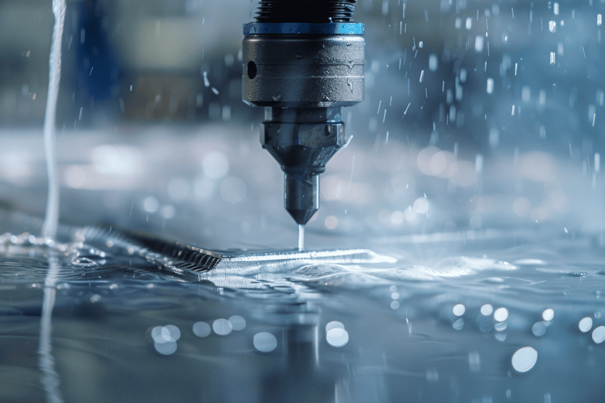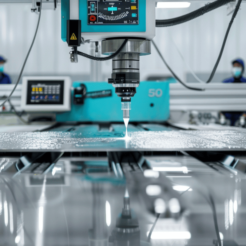 Принцип работы гидроабразивного станка с ЧПУ основан на подаче воды под высоким давлением через сопло малого диаметра. В режущую головку подаётся абразив — чаще всего гранатовый песок — который смешивается с водяной струёй. Ширина реза составляет около 1 мм, что позволяет экономно расходовать материал и точно вырезать сложные геометрические формы.